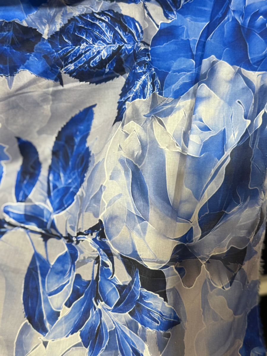 Blue Fabric with Flowers - 95% Cotton, 5% Elastane