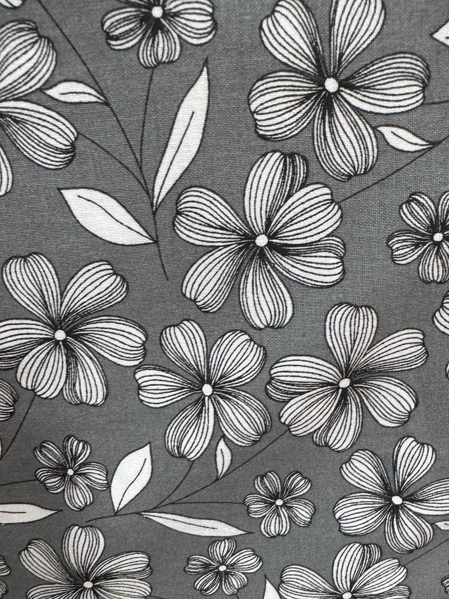 Quilting Cotton Fabric - Sketch Daisies on Gray