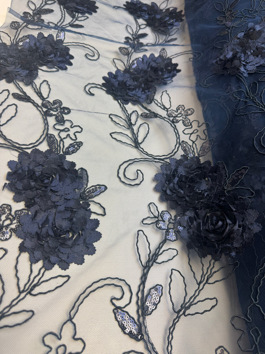 Navy Blue Lace | Embroidered Beaded Tulle
