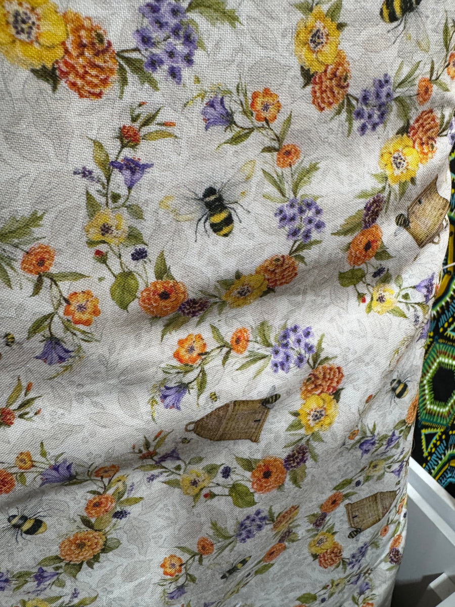 Quilting Cotton Fabric - Cream with Bees and Flowers