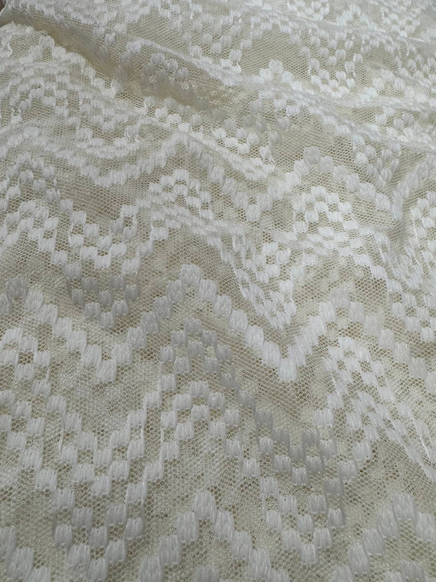 Poly Cotton Blend Fabric - Diamond Pattern Lace Ivory