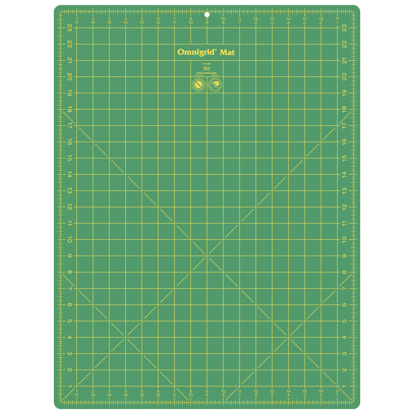 The 18 x 24-inch Omnigrid cutting mat is ideal for larger-scale sewing and quilting projects. It accommodates a standard folded width of 45-inch fabric. This mat is a convenient size for sewing and quilting classes, workshops and retreats. It's also perfect for spacious home studios.